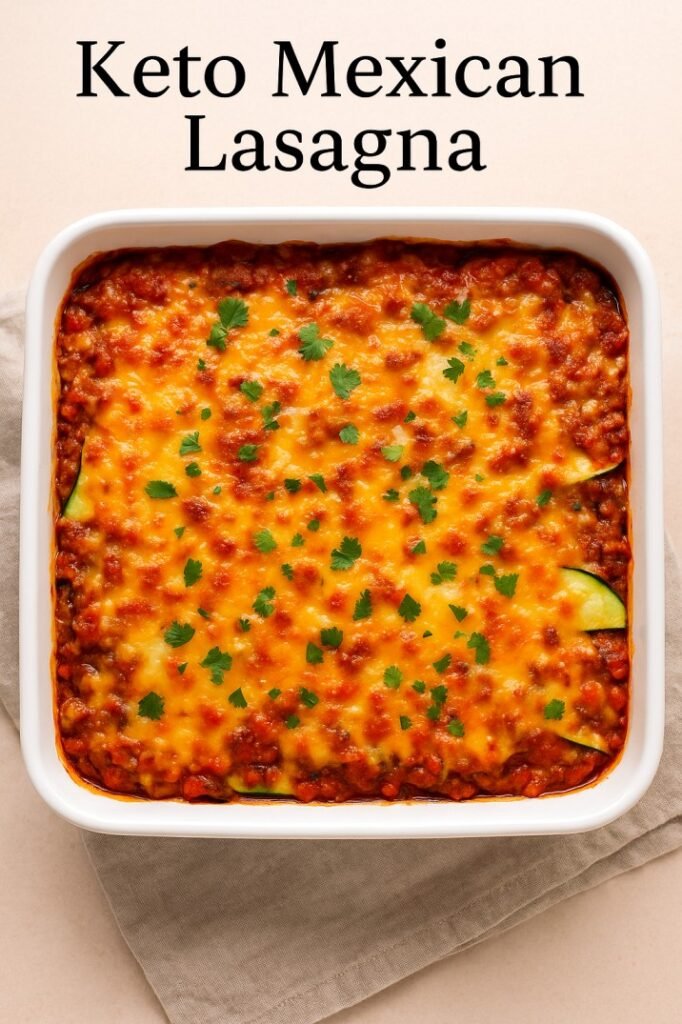 The Keto Mexican Lasagna is a tasty low-carb comfort dish that is a mix of the spicy cuisine of Mexico and the cream and cheese-richness of the traditional lasagna. Rather than the normal noodles, using thin slices of the zucchini or low-carb tortillas, one layers the dish with ground beef seasoned, melted cheese, and spicy salsa to make a hearty meal without the carbs. The dish is ideal as it provides the satisfaction of a Mexican casserole with the nutritional benefit of being light and healthy, and it is perfect for a person who is already on a ketogenic or low-carb diet.